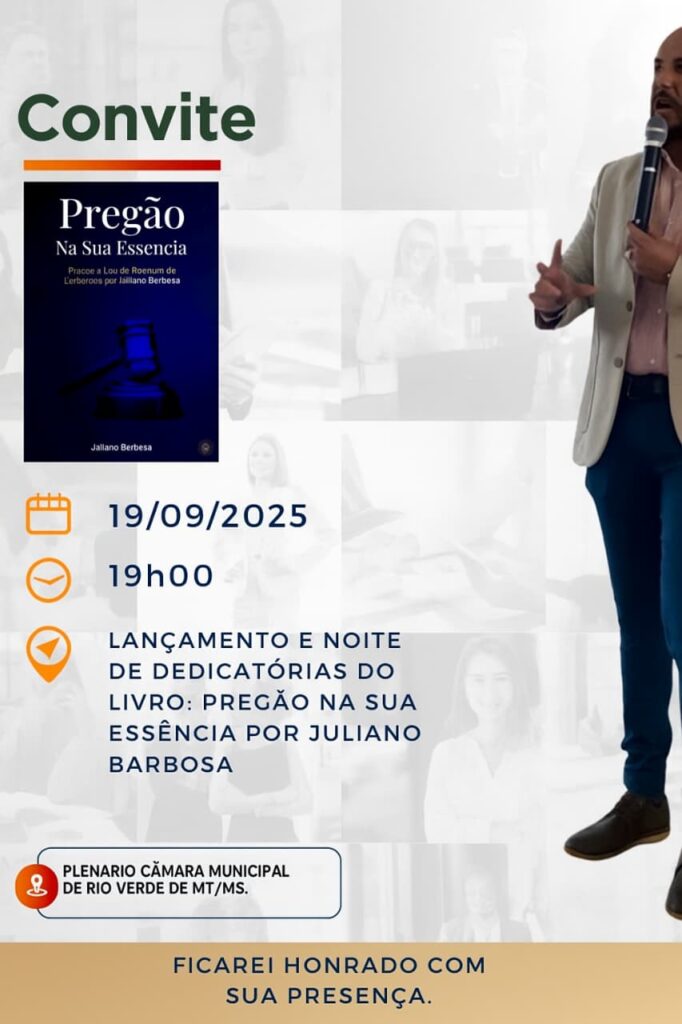 FICA ADIADA PARA DIA 19/09/2025 AS 19 H LANÇAMENTO DO LIVRO NO PLENÁRIO DA CÂMARA MUNICIPAL DE RIO VERDE DE MT/MS.