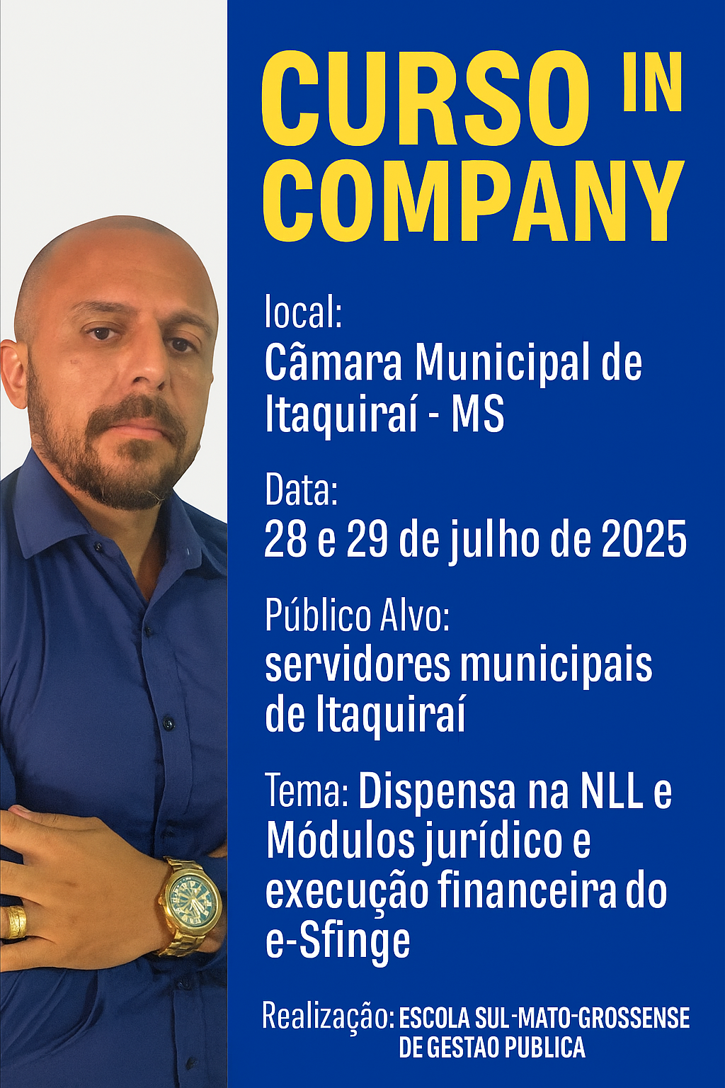 Curso in companylocal: Câmara Municipal de Itaquirai - MSData: 28 e 29 de julho de 2025Público alvo: servidores...
