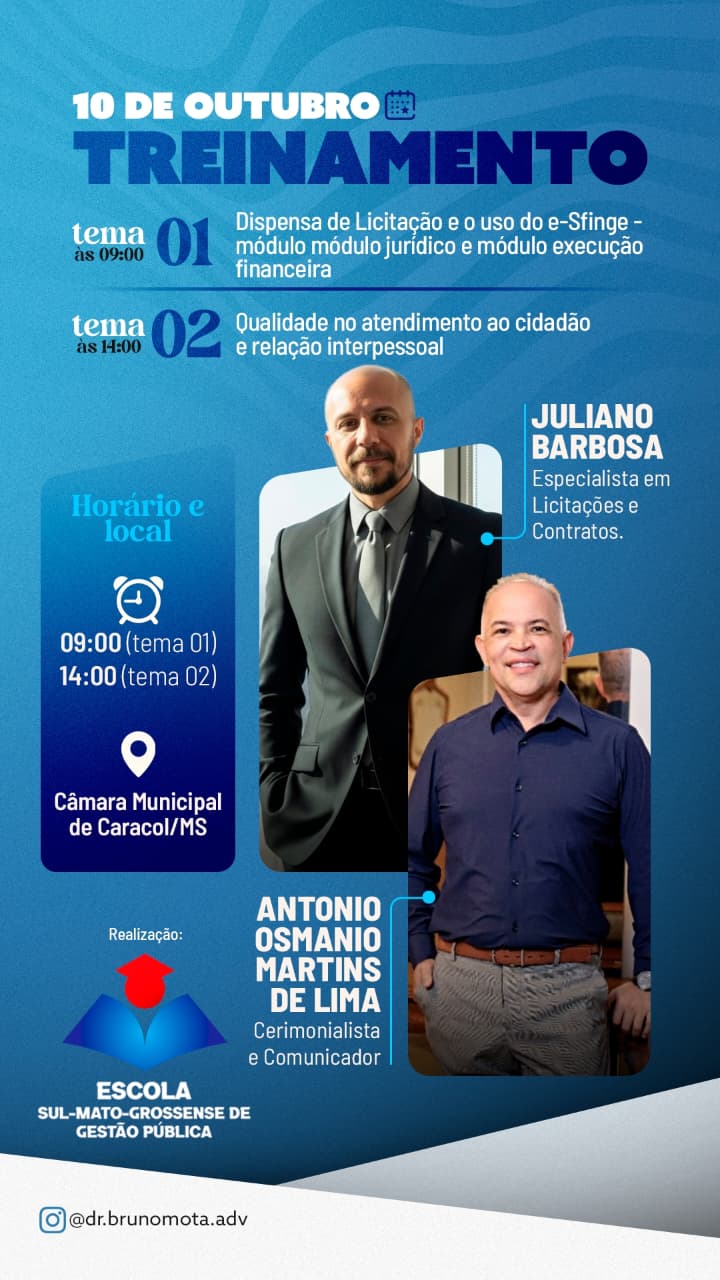 No dia 10 de outubro de 2025, estarei ministrando curso/treinamento aos servidores municipais do legislativo de Caracol -...